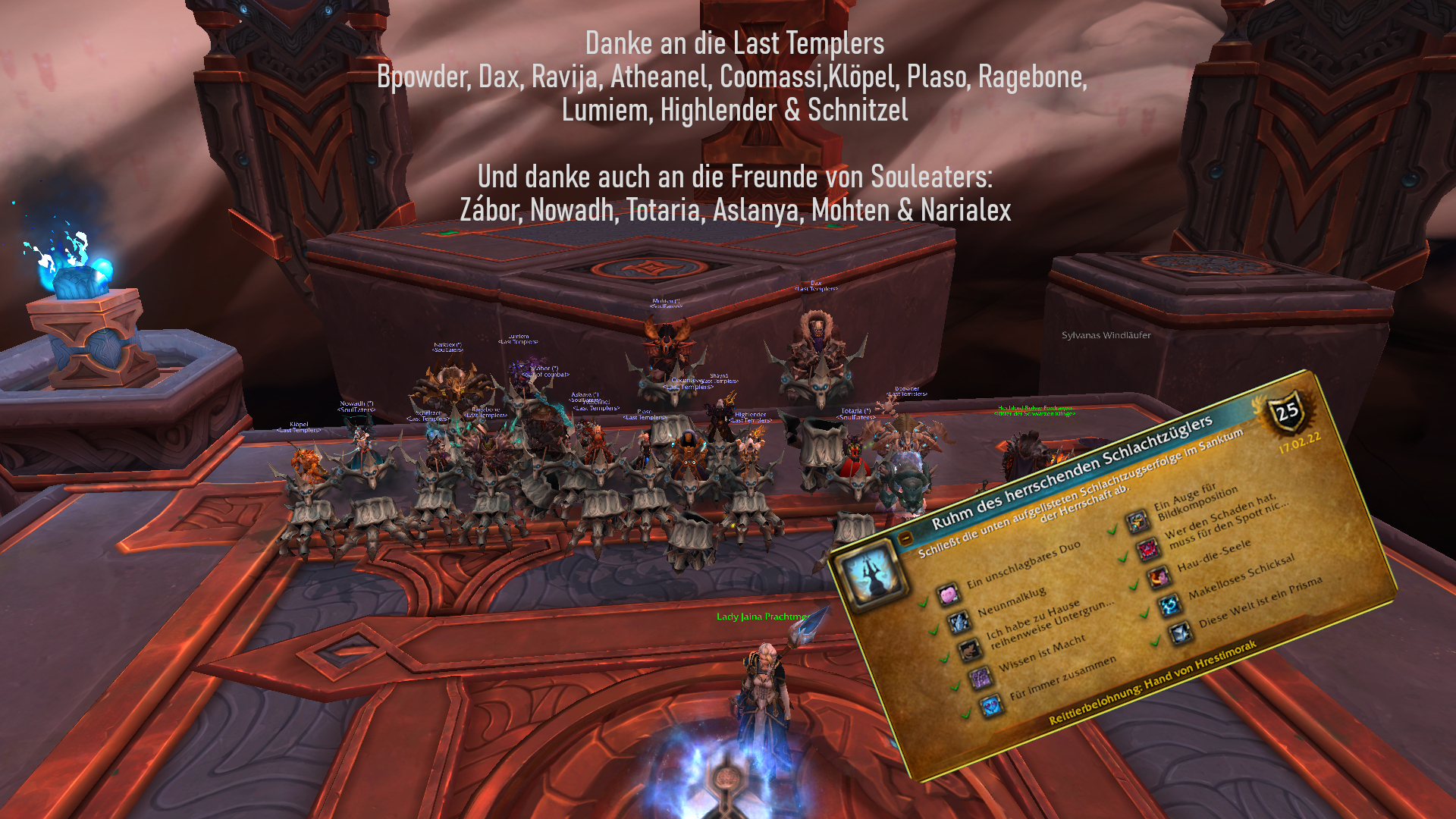 Ja, die meisten waren ja dabei, aber für alle die es noch nicht wußten: Andiun Hc ist geschafft ;) yes. Jetzt nur noch die letzten Bosse, dann haben wir den Raid im HC auch durch, bevor wir komplett durch sind ;). Der Sommer macht ja doch einigen ordentlich zu schaffen :O haltet durch.. der Winter kommt ja auch noch bevor wir das neue Addon Dragonflight rauskommt...